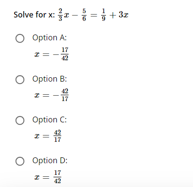 Multiply both sides of the equation by a common denominator. We will use 18 in this example, but any common denominator will work.