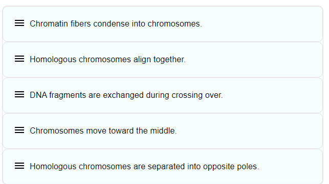 Option E is incorrect; mitosis does not involve the recombination of DNA. In fact, the chromosomes are identical in the two daughter cells. Crossing over happens during the prophase I stage of meiosis, where the sister chromatids of homologous chromosomes exchange DNA fragments, which results in a variation of genetic materials in the daughter cells.