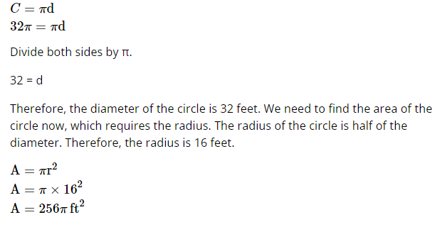 The area of a circle is 64π cm2. What is the circumference of the circle?