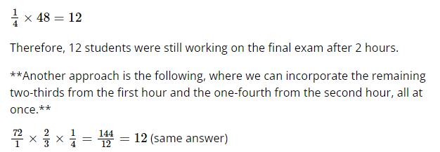 This means that 48 students remain after the first hour. Since three-fourths of these remaining students completed the exam within the next hour, then one-fourth of them did not, which will also be our answer.