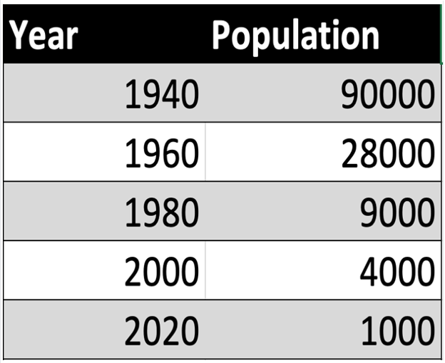 As the years go up, the population went down. Each variable (year and population) heads in the opposite direction, which indicates that there is a negative relationship.