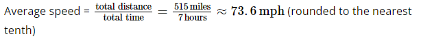 Therefore, the total distance was 515 miles (320+195), which took a total time of 7 hours (4+3).